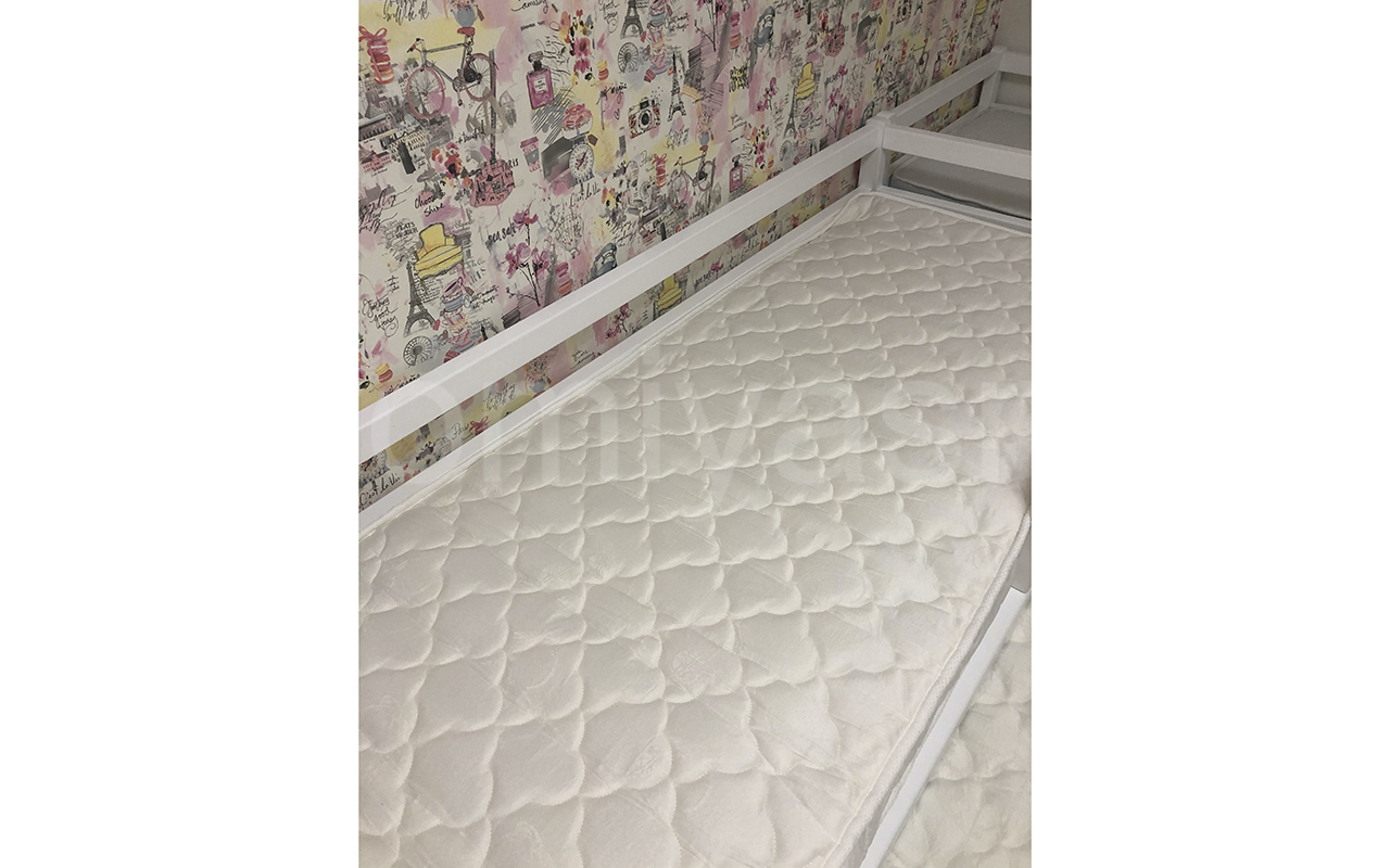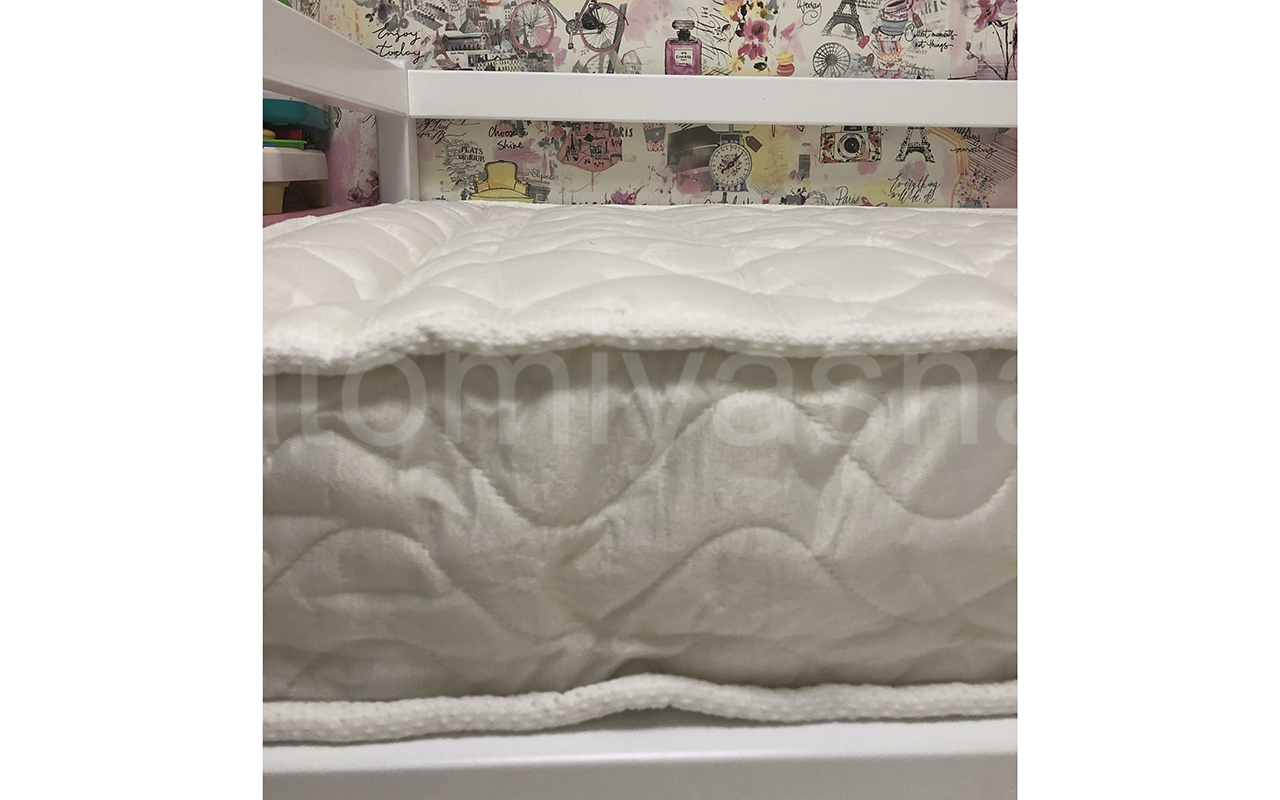 Верхнее покрытие матраса изготовлено из материала трикотаж - натуральный текстильный материал, изготавливаемый на основе хлопка, вискозы, шелка или шерсти методом переплетения систем двух нитей (основы и утка) по взаимно перпендикулярным направлениям. В результате образуется эластичное полотно с петлями. Трикотаж мягкий и приятный на ощупь. Материал получил широкое распространение в текстильной промышленности. Трикотаж используют производители матрасов для изготовления верхнего покрытия для матрасов, чехлов, наматрасников.